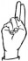 На ћирилици написано МИРЈАНА БЕТЕГАЛО састоји се из 15 слова [?]. Исписано ћириличном једноручном азбуком за глувонеме: